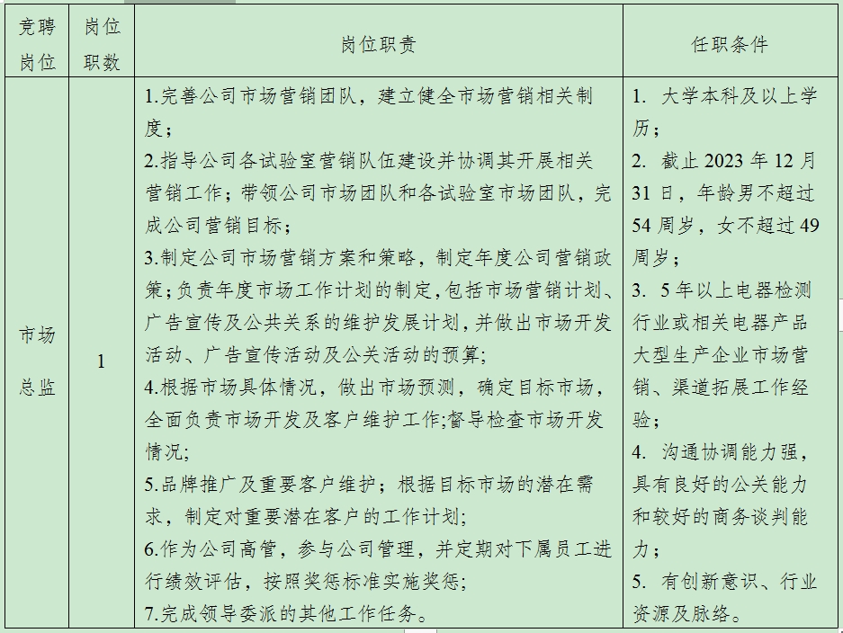 湖南電科院檢測集團有限公司招聘簡章——市場總監